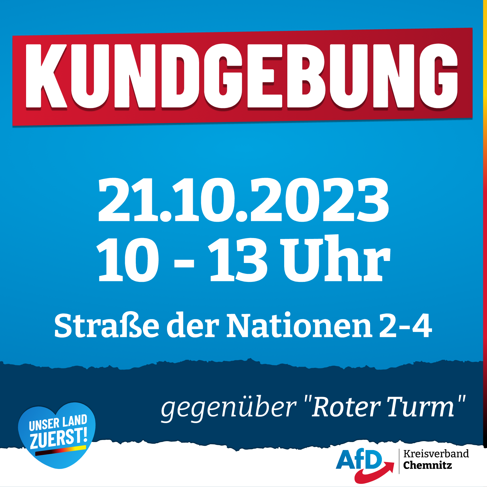 Unsere Kundgebung findet dieses Mal in der Nähe des Roten Turms statt, genauer gesagt in der Straße der Nationen 2-4. Am 21.10.23 von 10 bis 13 Uhr sind wir dort, um über die aktuellen Entwicklungen zu sprechen und uns mit Ihnen auszutauschen. 📆