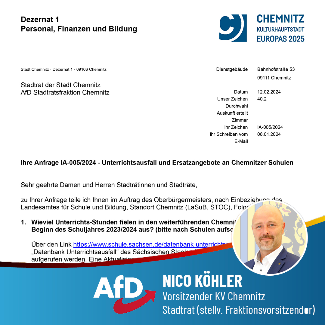 IA-005/2024 – Unterrichtsausfall und Ersatzangebote an Chemnitzer Schulen