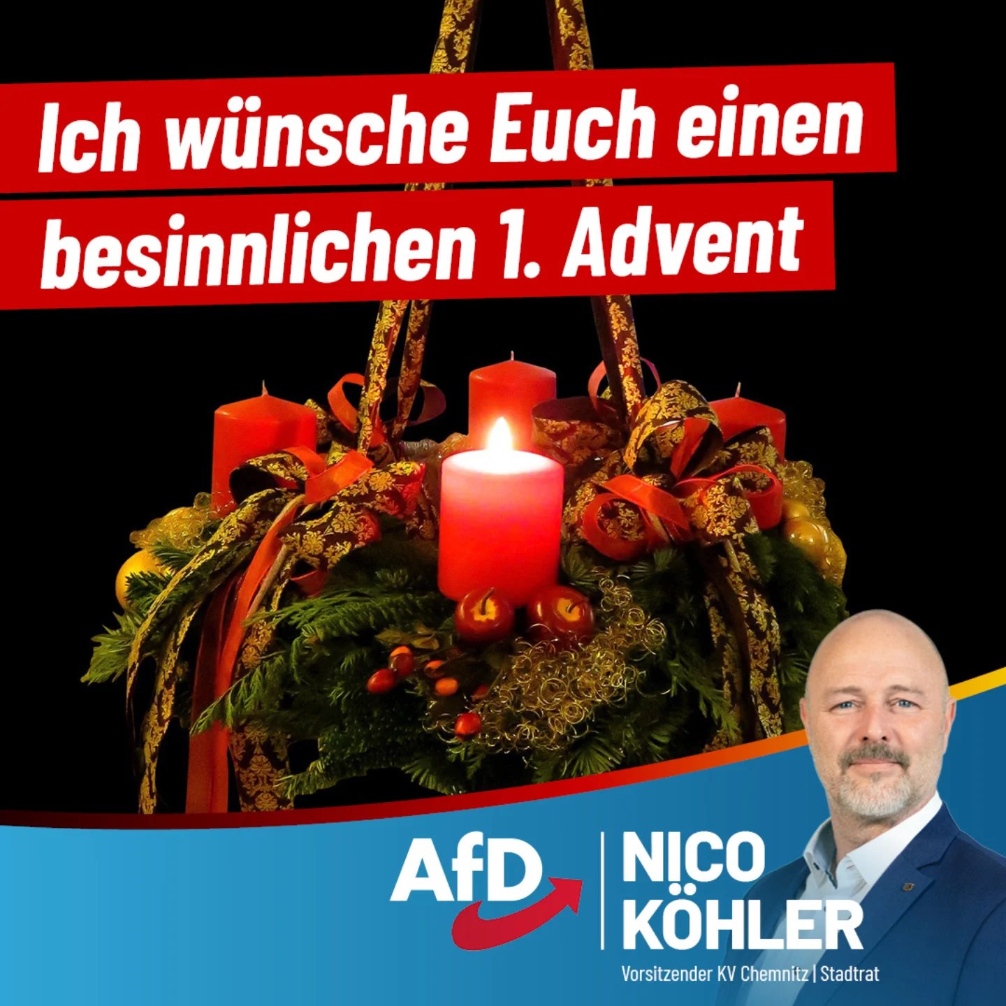 Im Namen des Chemnitzer AfD Kreisverbandes wünsche ich Euch und Euren Lieben einen besinnlichen 1. Advent.