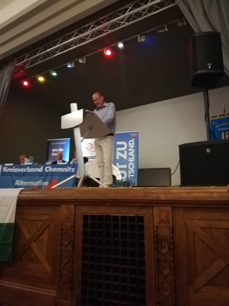 Nach der Begrüßung durch Bundessprecher Tino Chrupalla begannen die Kandidatenvorstellungen und die Abstimmungen. Neben einigen neuen Gesichtern wurden u.a. Jörg Urban, Jan Zwerg und Sebastian Wippel in ihren Ämtern bestätigt. Neuer Landesschatzmeister wurde Torsten Gahler. Unser Kandidat für den Posten des stellv. Landesschatzmeisters, Steffen Wegert, verpasste den Einzug in den Landesvorstand denkbar knapp. Anschließend wurden durch die Delegierten noch die Richter für das Landesschiedsgericht bestimmt.